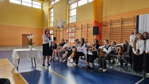 Po zakończeniu części artystycznej Pani Dyrektor Stanisława Łabuz przypomniała o najważniejszych kwestiach organizacyjnych oraz zasadach obowiązujących w szkole.