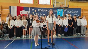 Uroczystość rozpoczęła się od krótkiego programu artystycznego, który przygotowali uczniowie klas szóstych.